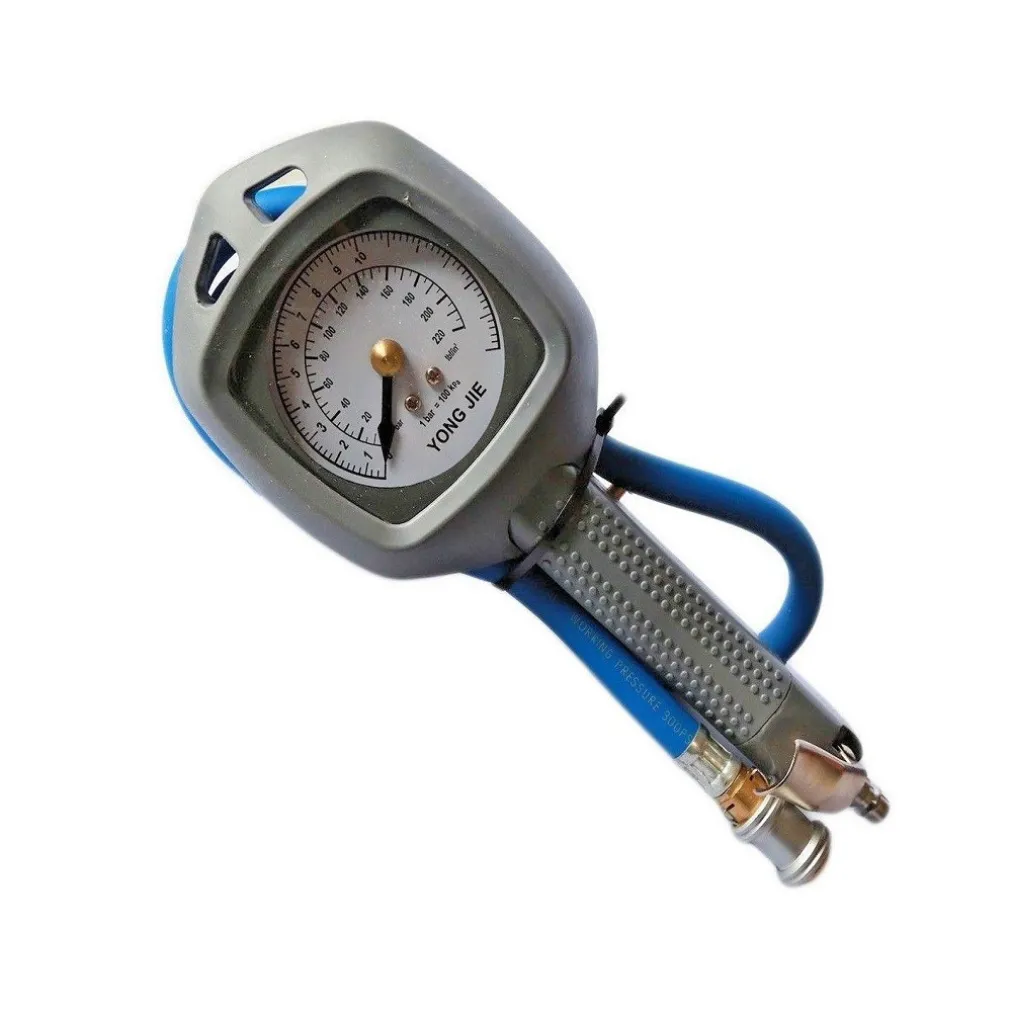 Manometro pistola per aria compressa dotata di manometro rivestito in gomma atossica, antiurto, con doppia scala di lettura: bar e psi. È indispensabile controllare sempre la pressione dei vostri pneumatici per ridurne il consumo degli stessi ma anche del carburante.