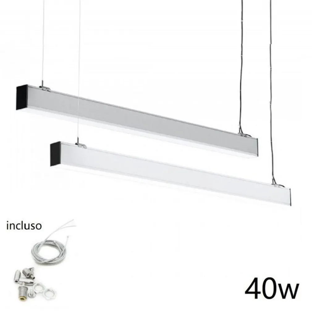 PLAFONIERA 40W 120CM CON CAVI SOSPENSIONE ALLUMINIO SILVER ILLUMINAZIONE LUCE 6500K 00640