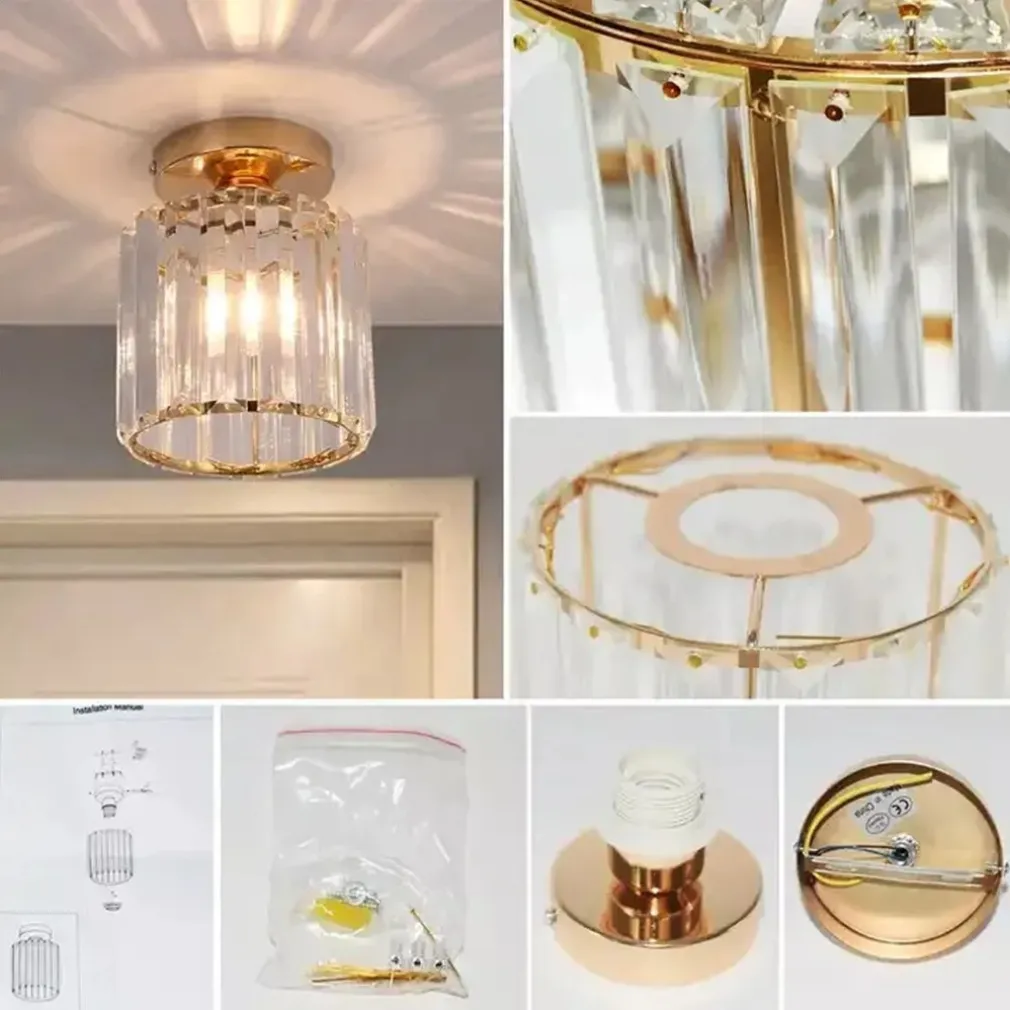 La confezione comprende la plafoniera in cristallo, un kit di montaggio e le istruzioni per l’installazione. La lampadina non è inclusa, ma è possibile utilizzare qualsiasi lampadina con attacco E27.