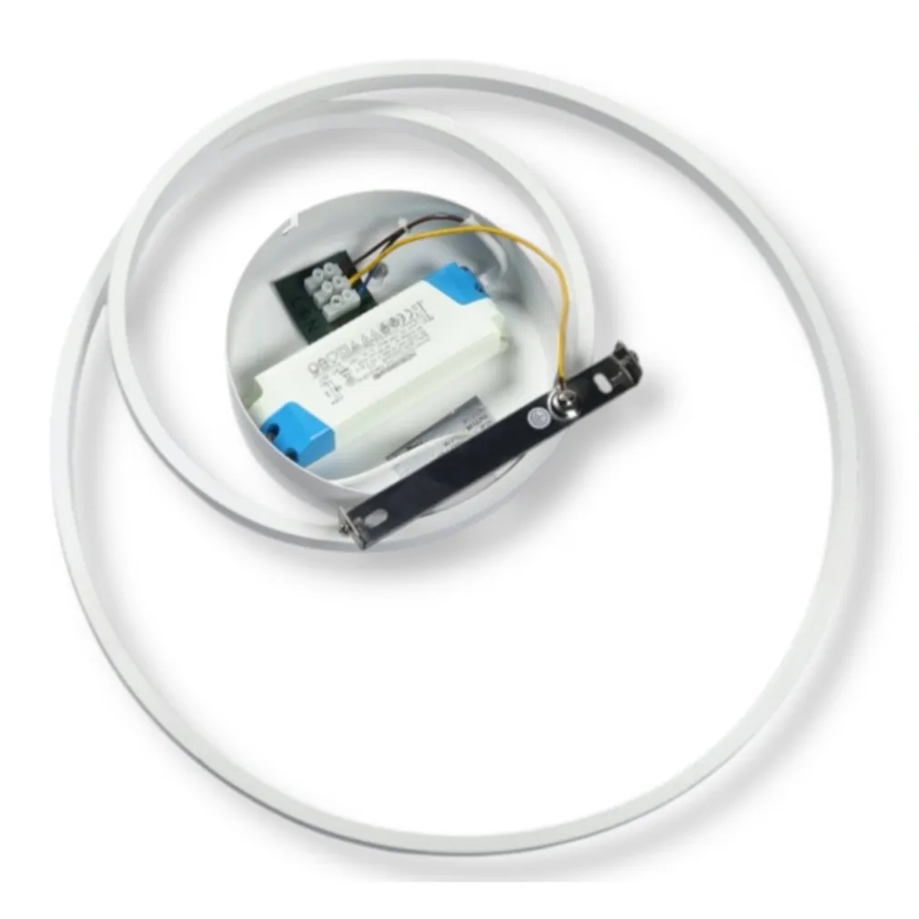 Scopri la PLAFONIERA LAMPADARIO LED SMD SOFFITTO DESIGN AD ANELLI 32W 3IN1 CCT PN-20B3C, una soluzione luminosa che unisce design contemporaneo, efficienza e praticità. Con la sua forma a due anelli realizzata in vernice di alluminio e PVC bianco, si adatta perfettamente a qualsiasi ambiente interno, garantendo uno stile raffinato e una luce sempre adeguata alle tue esigenze.