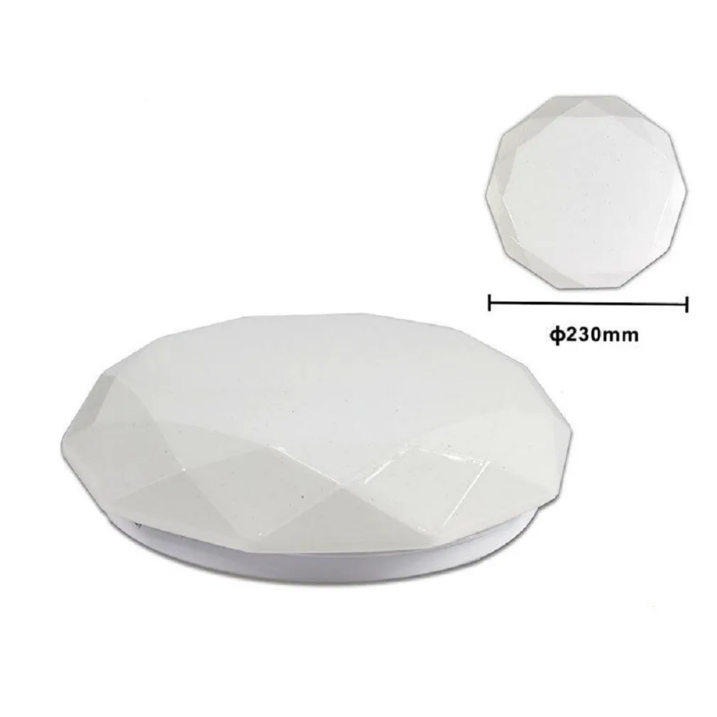 Plafoniera da soffitto lavorata con puntini trasparenti a basso consumo di soli 12 watt che dona una forte illuminazione grazie ai suoi 24 led, con colorazione a luce calda 3000k, naturale 4000k e bianca fredda 6500k. Realizzata con base in lamiera e scocca in plastica, ideale per case, uffici, bar e negozi.