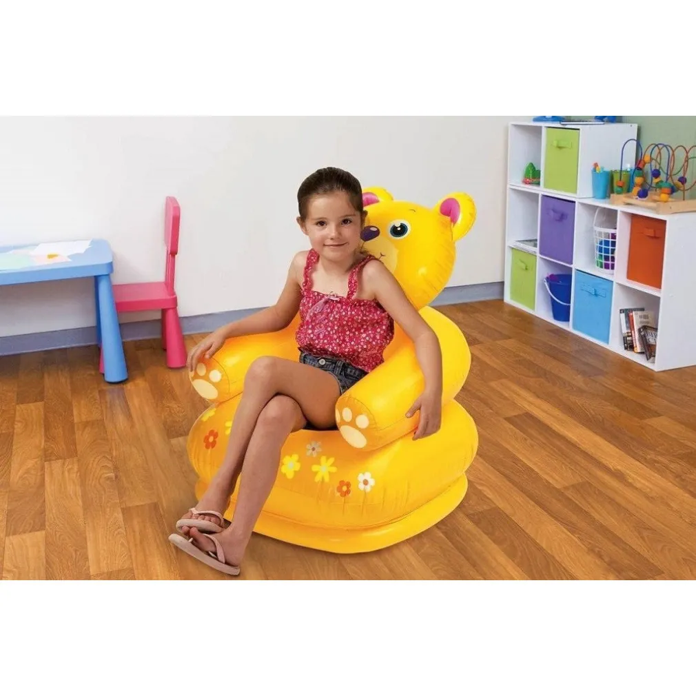 Fai divertire il tuo bambino dai 3 agli 8 anni con la simpatica poltrona Animali Felici. Gonfia l’articolo in resistente vinile e la poltrona dalle sembianze di un giocoso animale prenderà vita!