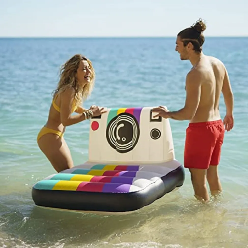 Preparati per il tuo primo piano con il materassino! Questo origiale materassino è caratterizzato da un design colorato che non mancherà mai di creare lo sfondo perfetto per i tuoi selfie in piscina durante il prossimo party in giardino. E’ adatto a un adulto e con il suo design che richiama quello delle famose Polaroid d’epoca ti riporterà ai tempi delle fotocamere istantanee e di una vita più “analogica” mentre ti rilassi appoggiato al suo comodo schienale. Facile da gonfiare, sgonfiare e trasportare, con questo gonfiabile cambiare location non è mai un problema. Spontanee o in posa, ogni foto che scatterai sarà degna di essere pubblicata. Cosa aspetti? Luci, camera, e… sorridi!