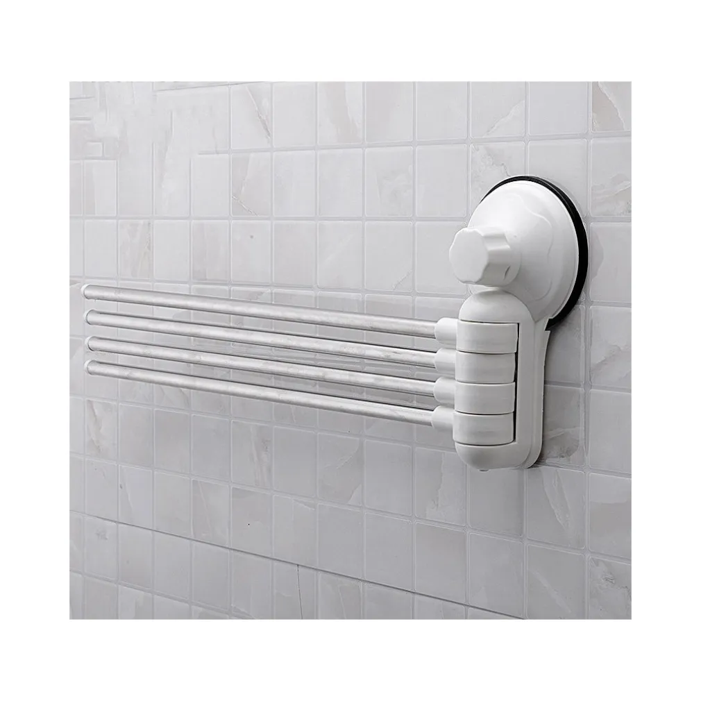 Porta asciugamani da bagno a 4 posti con sistema di fissaggio a muro con ventosa.