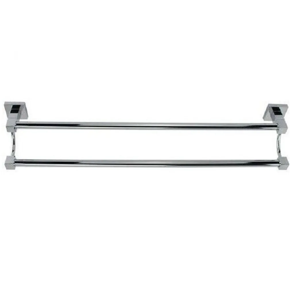 Porta Asciugamani Doppio Acciaio Bagno Fissaggio Parete 60cm Square