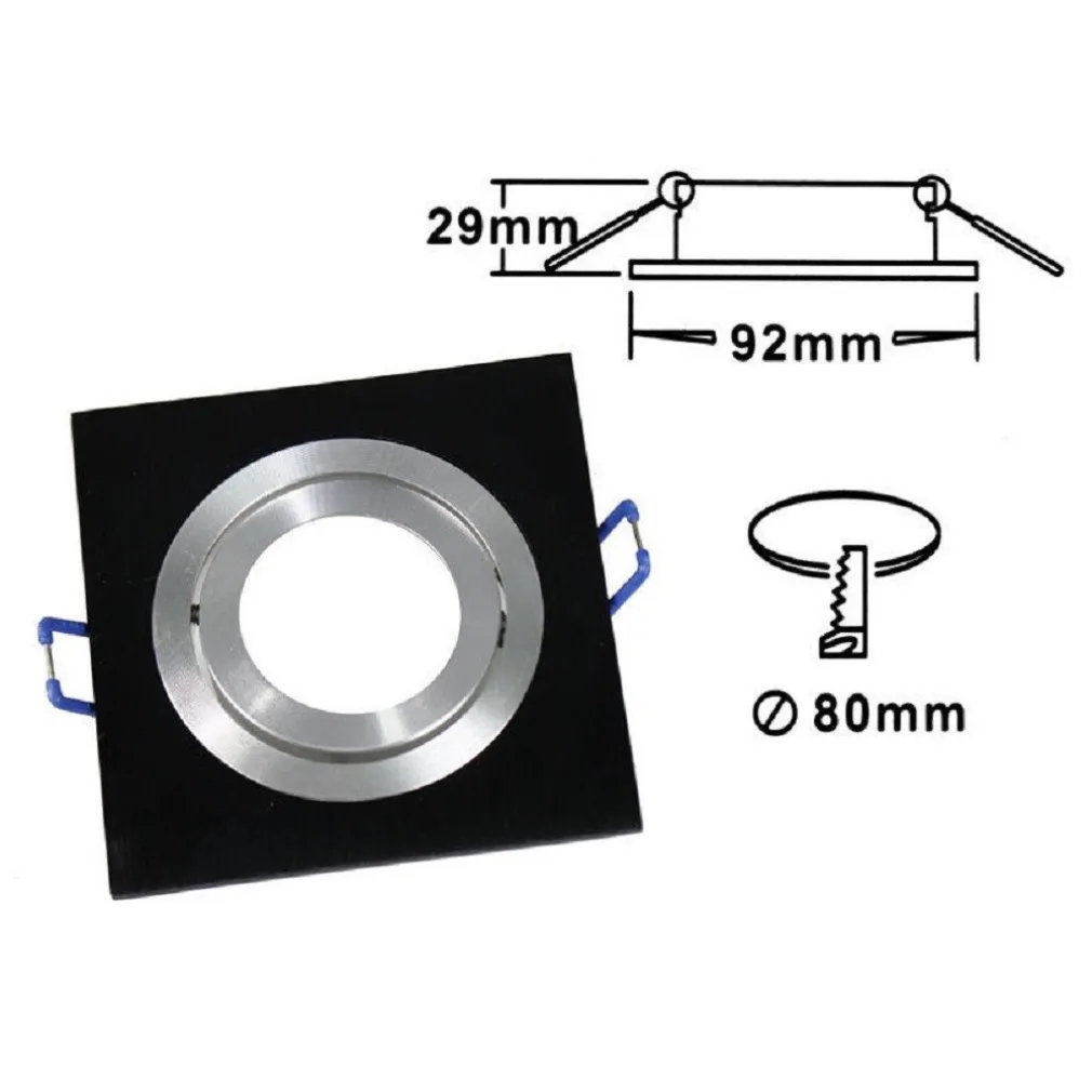 Incasso per faretto orientabile quadrato in acciaio. Con fissaggio a molle è ideale per controsoffittature, si abbina facilmente ad un arredamento lineare e moderno. Disponibile in diversi colori: silver/oro, silver/marrone, silver, bianco e silver/nero.