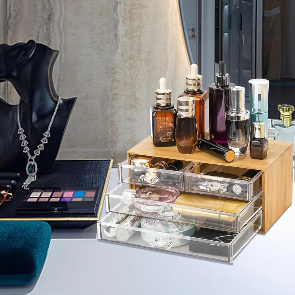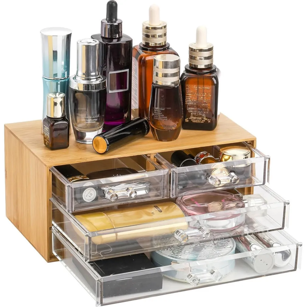 Un piccolo accessorio, un grande passo verso l’ordine perfetto. Rendi il tuo bagno o il tuo angolo beauty più elegante e funzionale con il nostro porta gioielli cosmetici con 4 cassetti in legno. Scopri la comodità di avere tutto al suo posto… sempre.
