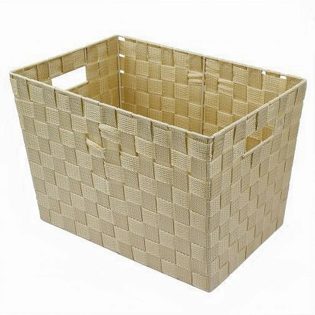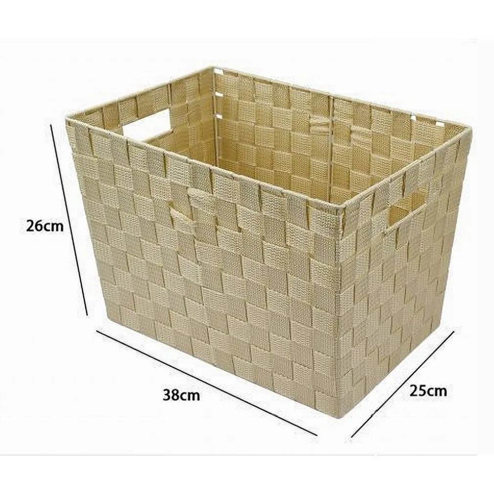 Porta Oggetti Cesto in Tessuto Intrecciato 38x26x25 cm con Maniglie Beige 79039