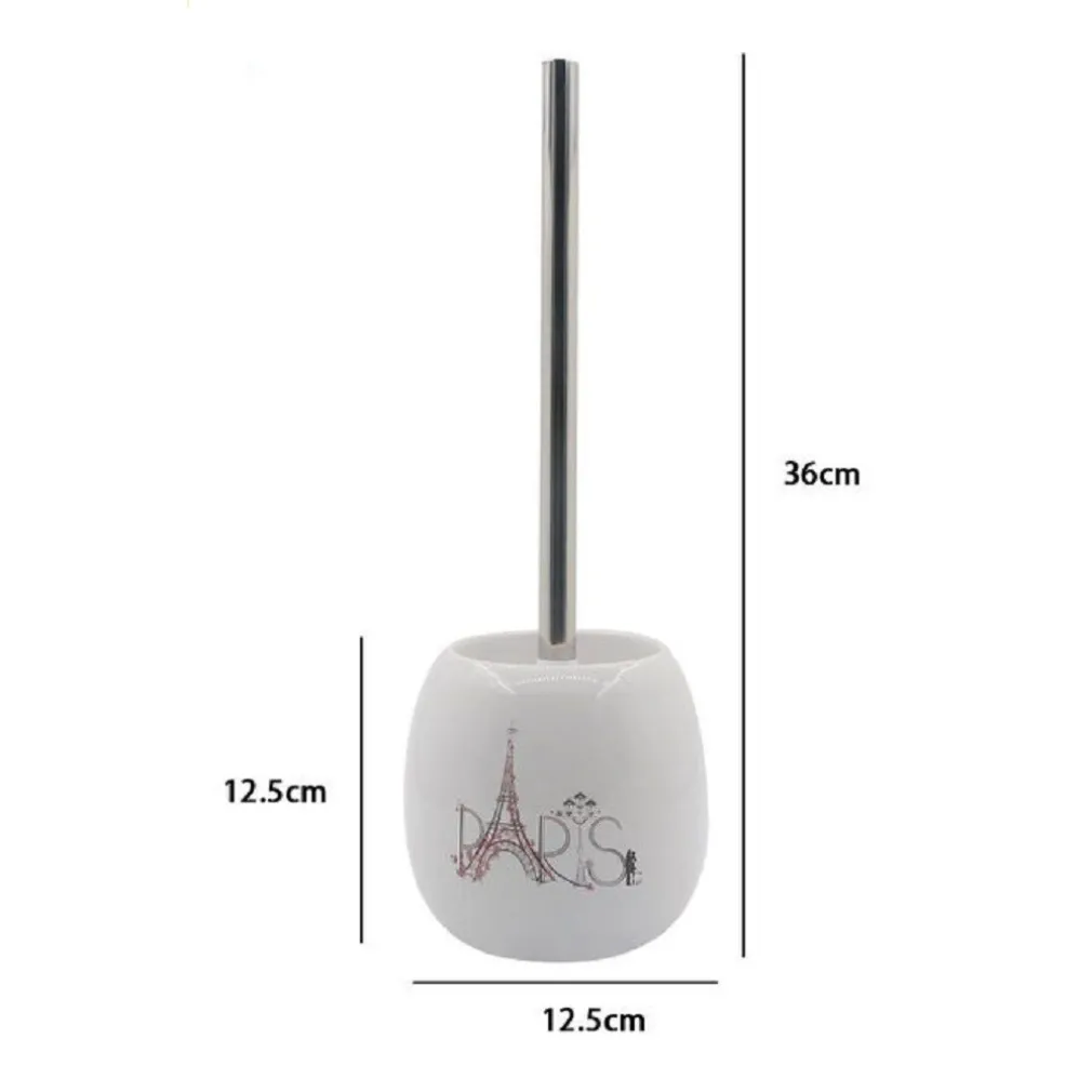 Porta Scopino Bianco Decorato con Scritta Paris – Portascopino Accessorio Bagno 87038