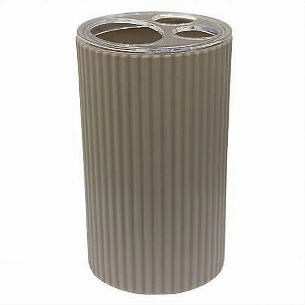 Portaspazzolini Bicchiere Accessorio per Arredo Bagno Beige Rigato 3 Fori 79166