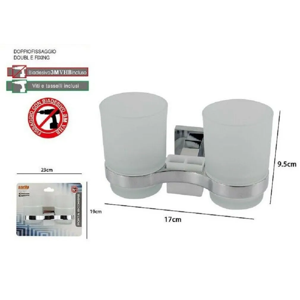 Bicchieri porta spazzolini da muro in acciaio cromato e vetro da installare o con le viti incluse nella confezione oppure con un mastice (colla) dalla presa ultraresistente.
