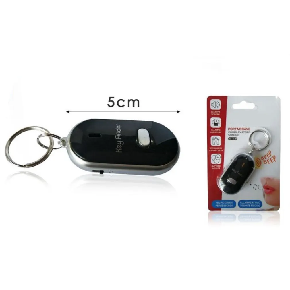 Allarme Sonoro: Grazie al sensore acustico integrato, il portachiavi emette un suono distintivo quando emetti un fischio, aiutandoti a localizzare rapidamente le chiavi smarrite anche all’interno della tua casa.
