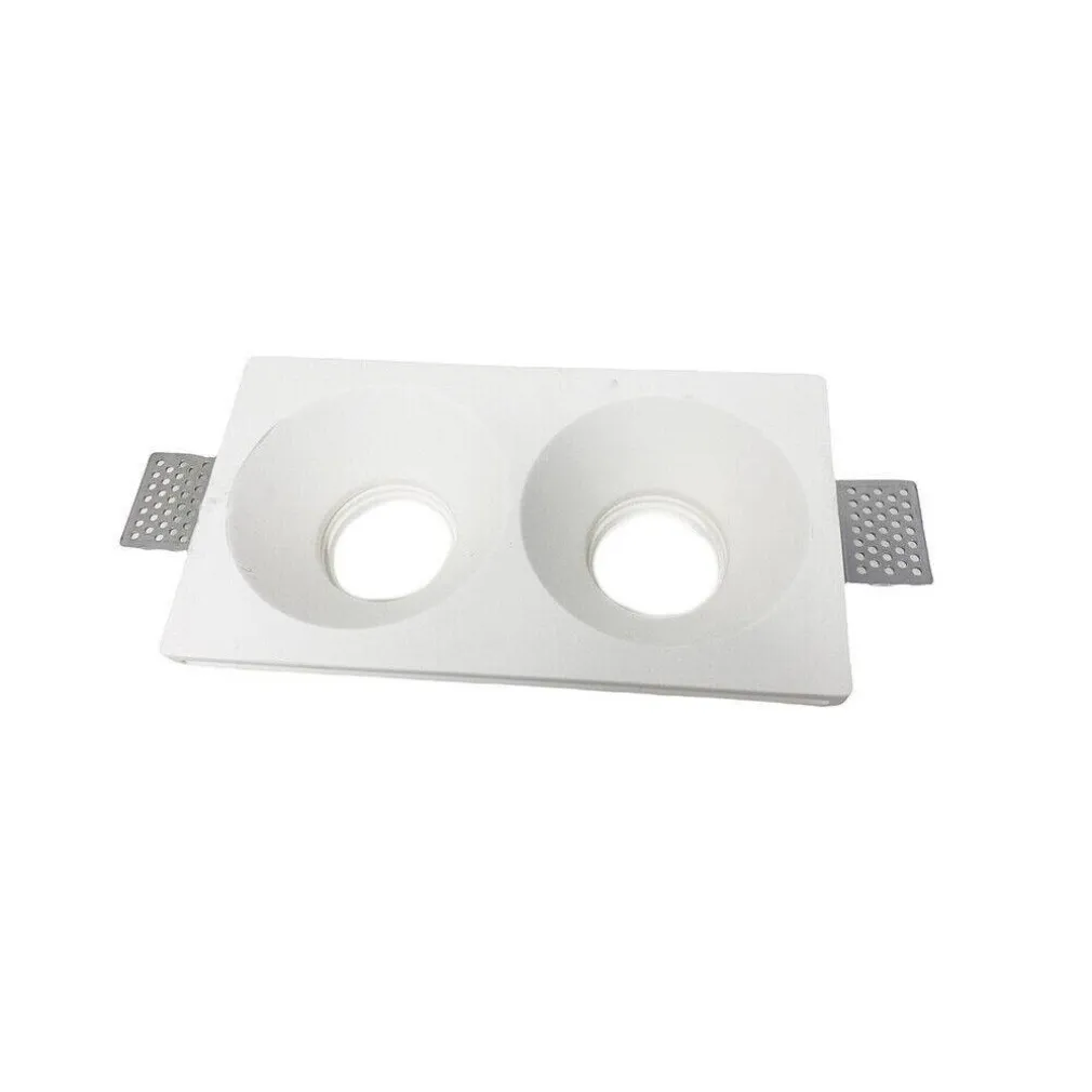 Porta faretto da incasso in gesso a scomparsa doppio portalampada orientabile supporto per faretti gu10. Incasso in gesso per faretto, verniciabile a scomparsa. Ideale per installazione in soffitti di cartongesso. L’istallazione corretta permette di renderlo invisibile conferendogli un aspetto integrato nel ribassamento del controsoffitto. Completo di doppio portalampada orientabile. Completo di due portalampada gu10 ( faretti non inclusi). Lampada in gesso da incasso. Questo corpo lampada in gesso è di forma tonda, ideato per accogliere due lampadine GU10. Un elemento minimale, perfetto in ogni tipologia di ambiente da quello privato a quello pubblico. Le sue linee pulite ed eleganti rendono questo porta faretti led perfetto per l’installazione in ogni tipologia di ambiente, sia in contesti pubblici che privati. Ideale per conciliare funzione ed estetica, illumina gli ambienti in modo raffinato, mettendo in risalto i dettagli. Semplice da istallare, è sufficiente predisporre il cartongesso, inserirlo, fare gli opportuni collegamenti e stuccare. Di colore bianco, è possibile verniciarlo in tinta con gli interni o in base alle necessità e ai gusti personali.