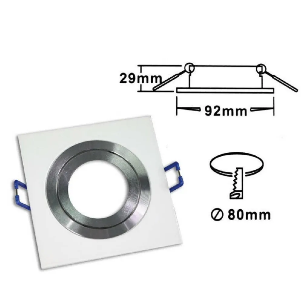 Faretto Incasso Quadrato in Acciaio – Gu10 Portalampada P3 Bianco/Silver
