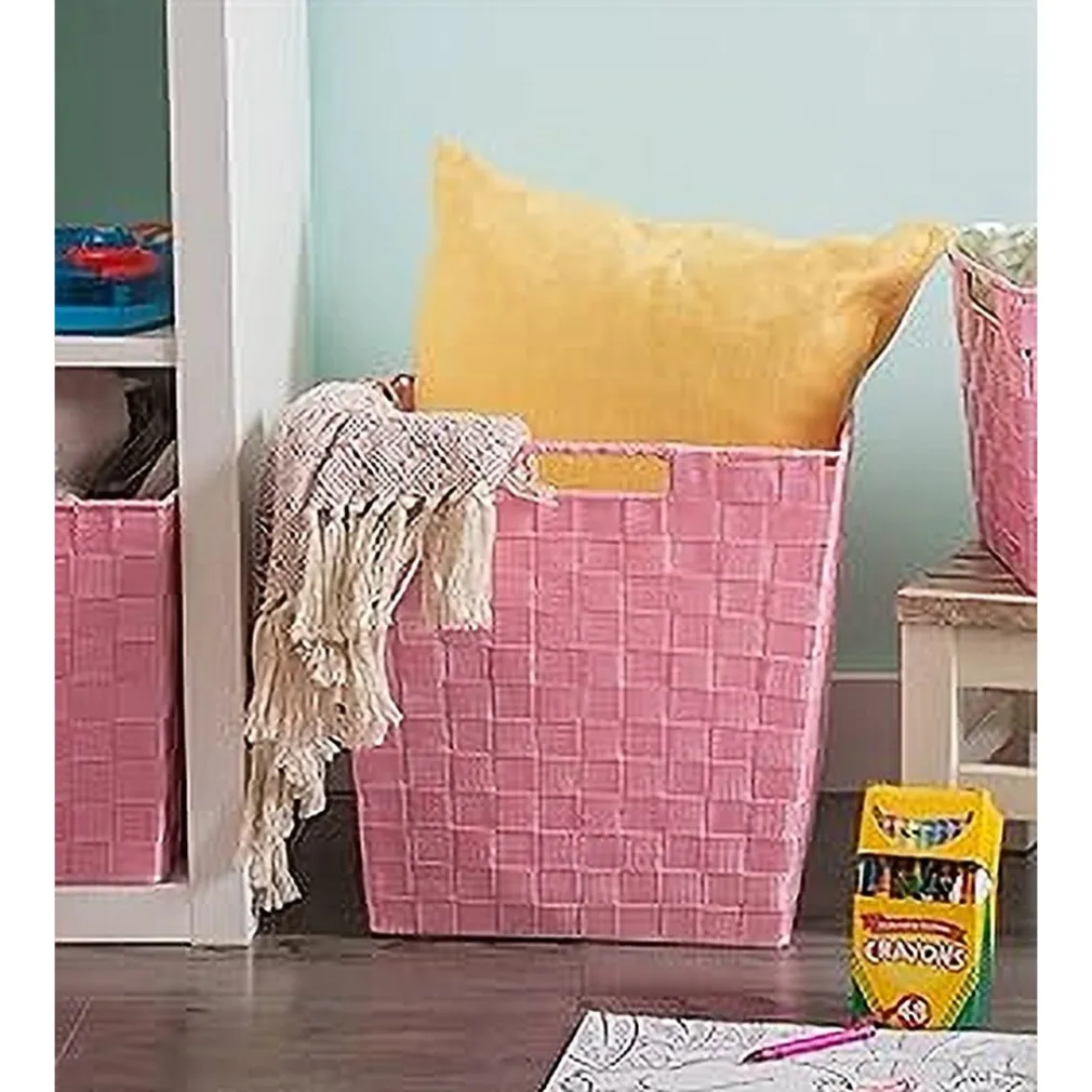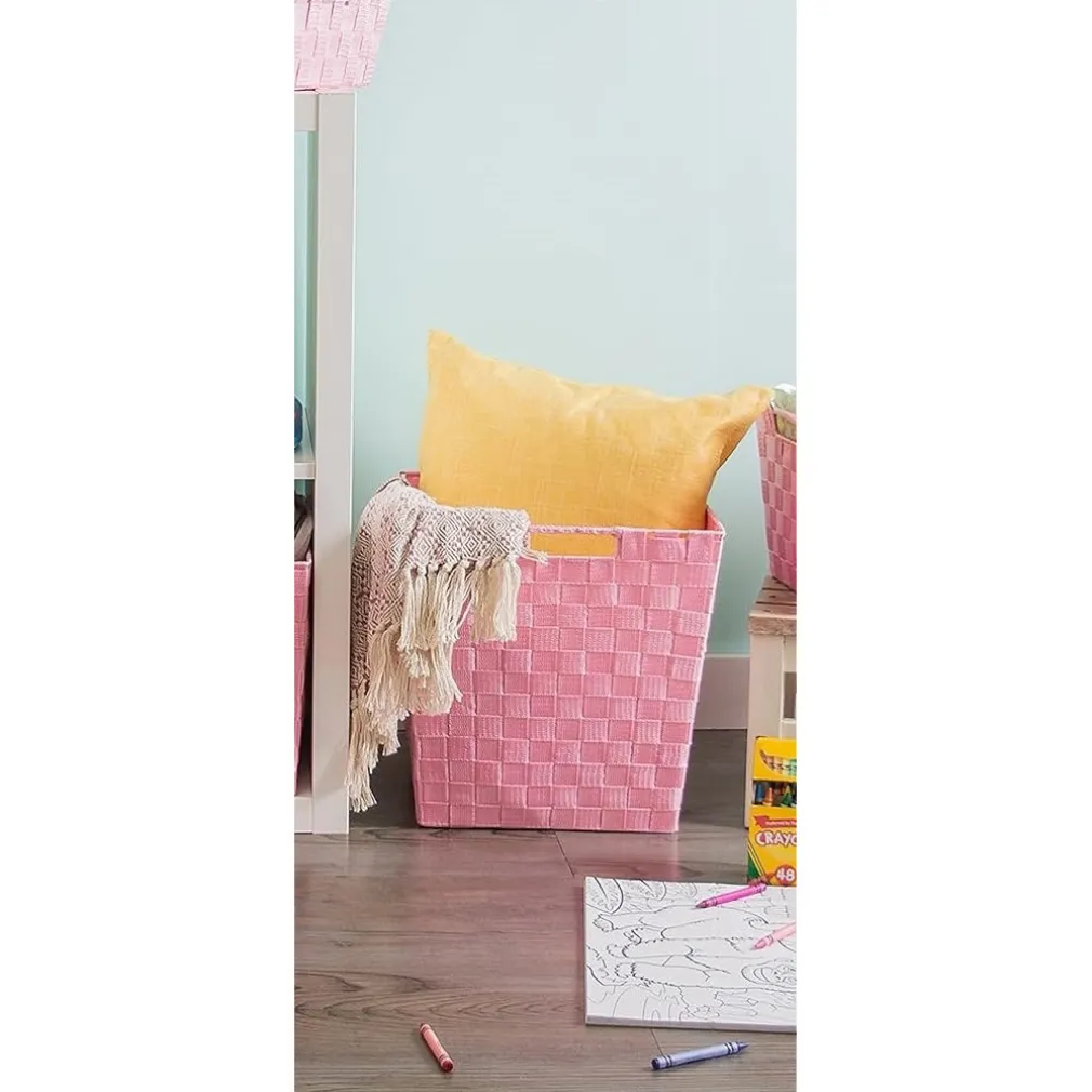 PORTAOGGETTI CESTO IN TESSUTO INTRECCIATO 38 X 26 X 25CM CON MANIGLIE ROSA 79041
