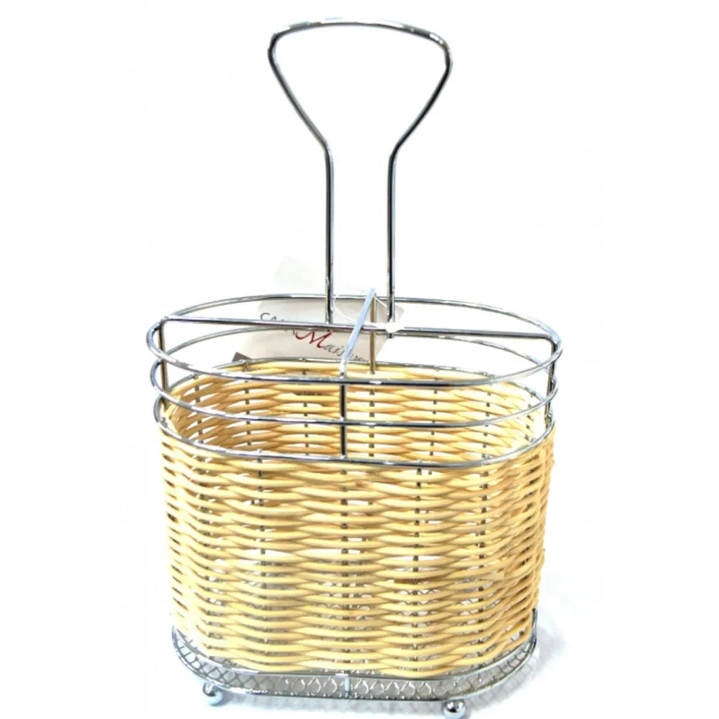 PORTAPOSATE 4 COMPARTI IN METALLO E RATTAN VIMINI SCOMPARTI SCOLA PORTA POSATE CONTENITORE SHABBY CHIC UTENSILI CUCINA