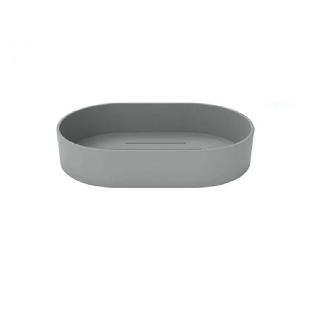 Piattino portasaponetta realizzato in plastica, accessori per il bagno ideali per decorare e arredare, dimensioni 13×8.5×2.5 cm, colore grigio opaco, coordinalo con il kit bagno abbinato e scopri tutta la gamma disponibile di articoli bagno.