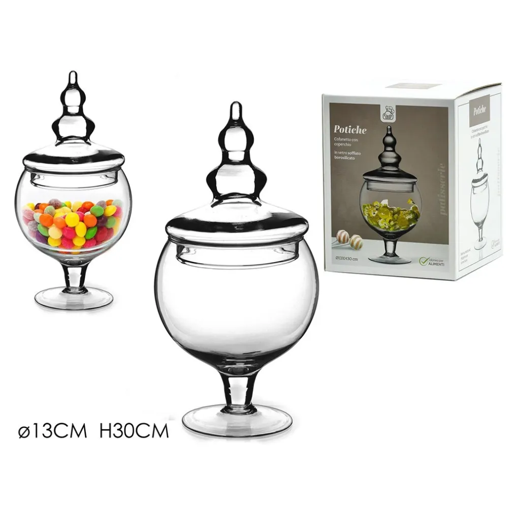 POTICHE IN VETRO COFANETTO CON COPERCHIO Ø13XH30CM PER DOLCI CARAMELLE OGGETTO DECORATIVO