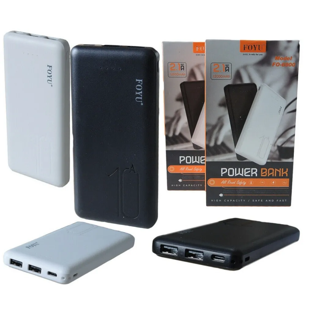POWER BANK 12000mAh 2 USB BATTERIA EMERGENZA SUPPLEMENTARE 2.1A type-C FO-6900