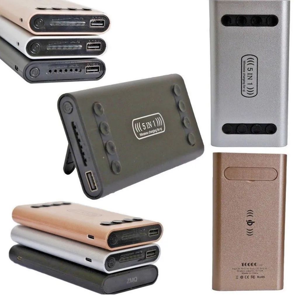 Power Bank 5 in 1 caricatore Wireless Qi Supporto 10000mAh carica batteria usb c