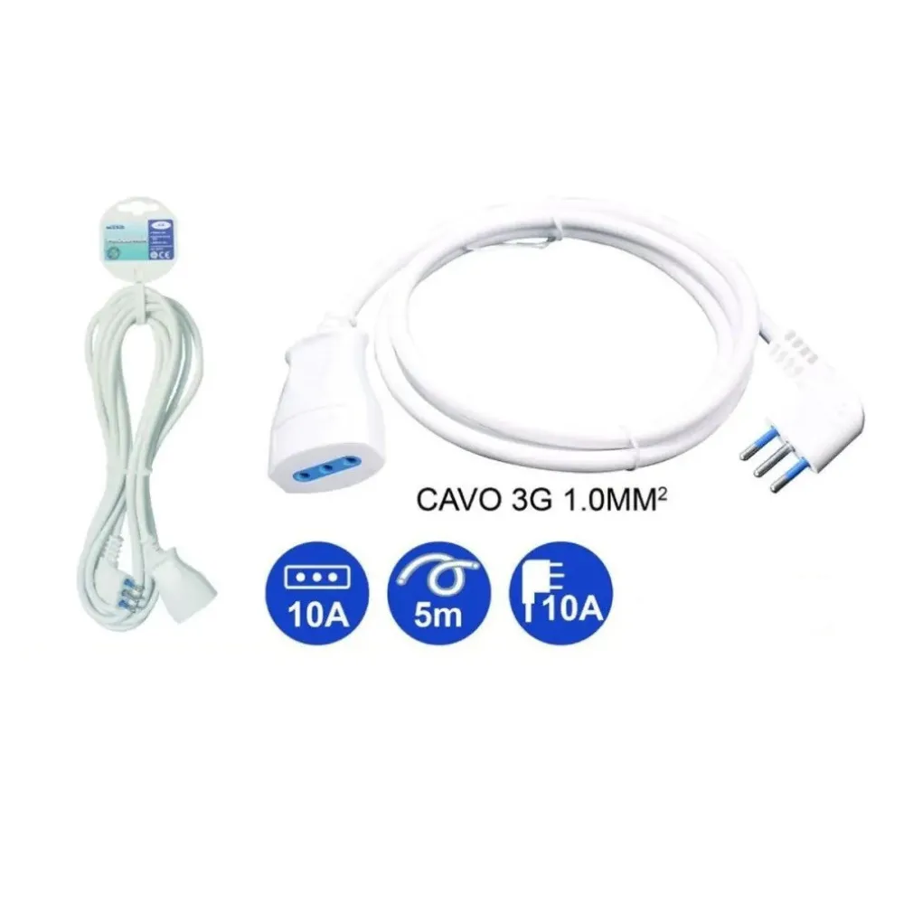- Materiali di Alta Qualità: Realizzata con cavo H05VV-F 3g 1.0mm2, questa prolunga assicura resistenza e durata nel tempo, anche in condizioni d’uso intensivo.