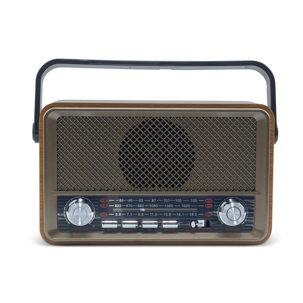 Rivivi gli anni 50″ con questa Radio in pieno stile retro, ideale per gli amanti del vintage. Questo dispositivo è qualcosa di più di una radio. Supporta unità flash, TF card e Bluetooth e consente all’utente di riprodurre file MP3 memorizzati. Grazie alla qualità eccezionale del suono, non ti stancherai mai di ascoltare la tua musica preferita. Dotata di bluetooth, la radio può connettersi a qualsiasi dispositivo in un solo secondo. Comoda, leggera e portatile, da portare ovunque tu voglia. Dispone di indicatore di ricarica, si spegne quando l’unità è completamente carica, rendendo il processo di ricarica semplice e senza problemi. Un vero e proprio gioiellino del vintage e della musica. Tieni la musica accesa e goditi il momento intimo con la persona amata!