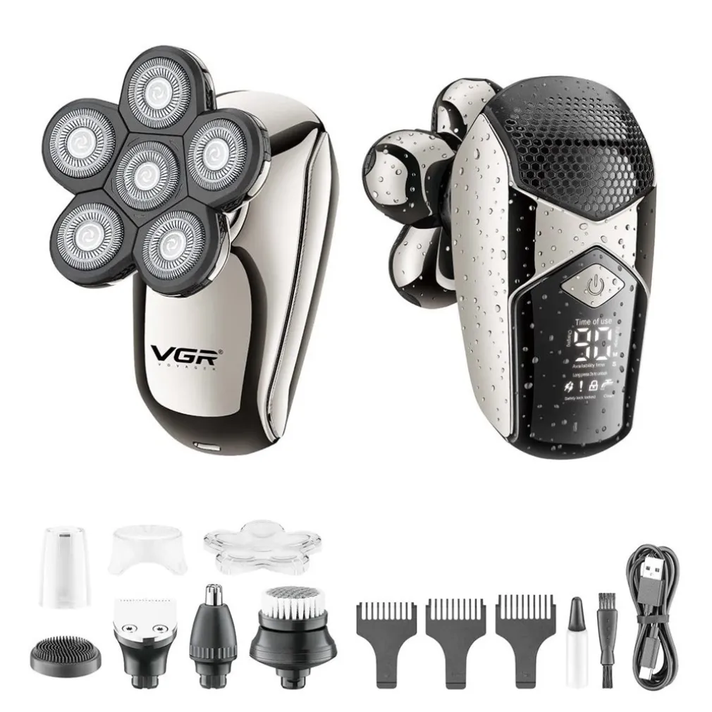 RASOIO 5IN1 LED ELETTRICO CORDLESS USB RICARICABILE IPX6 IMPERMEABILE VGR V-320