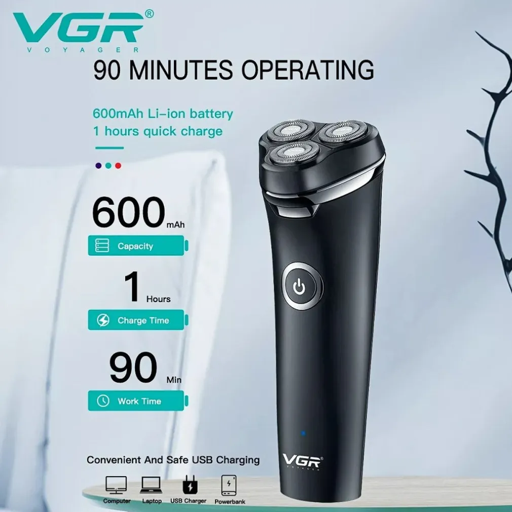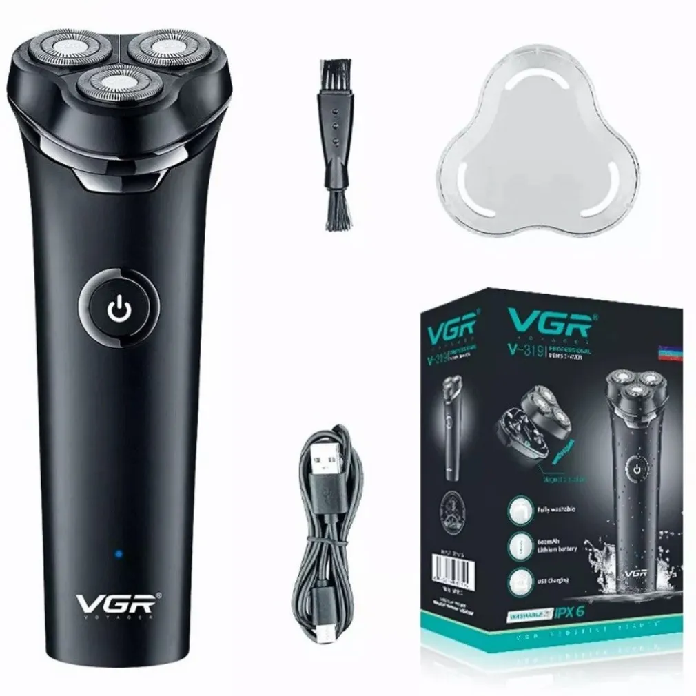 Rasoio elettrico per gli uomini barba trimmer macchina di taglio rotante tripla lama carica usb impermeabile vgr v-319