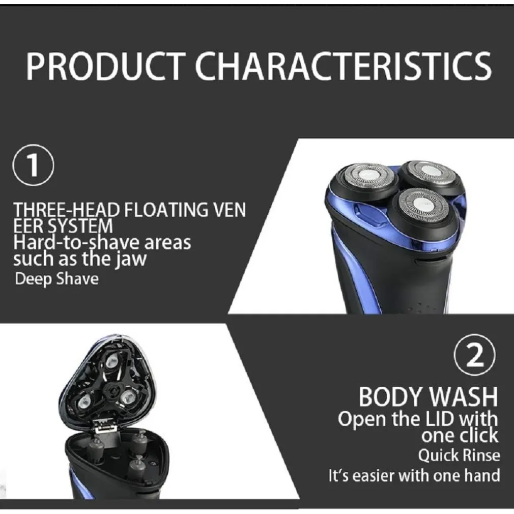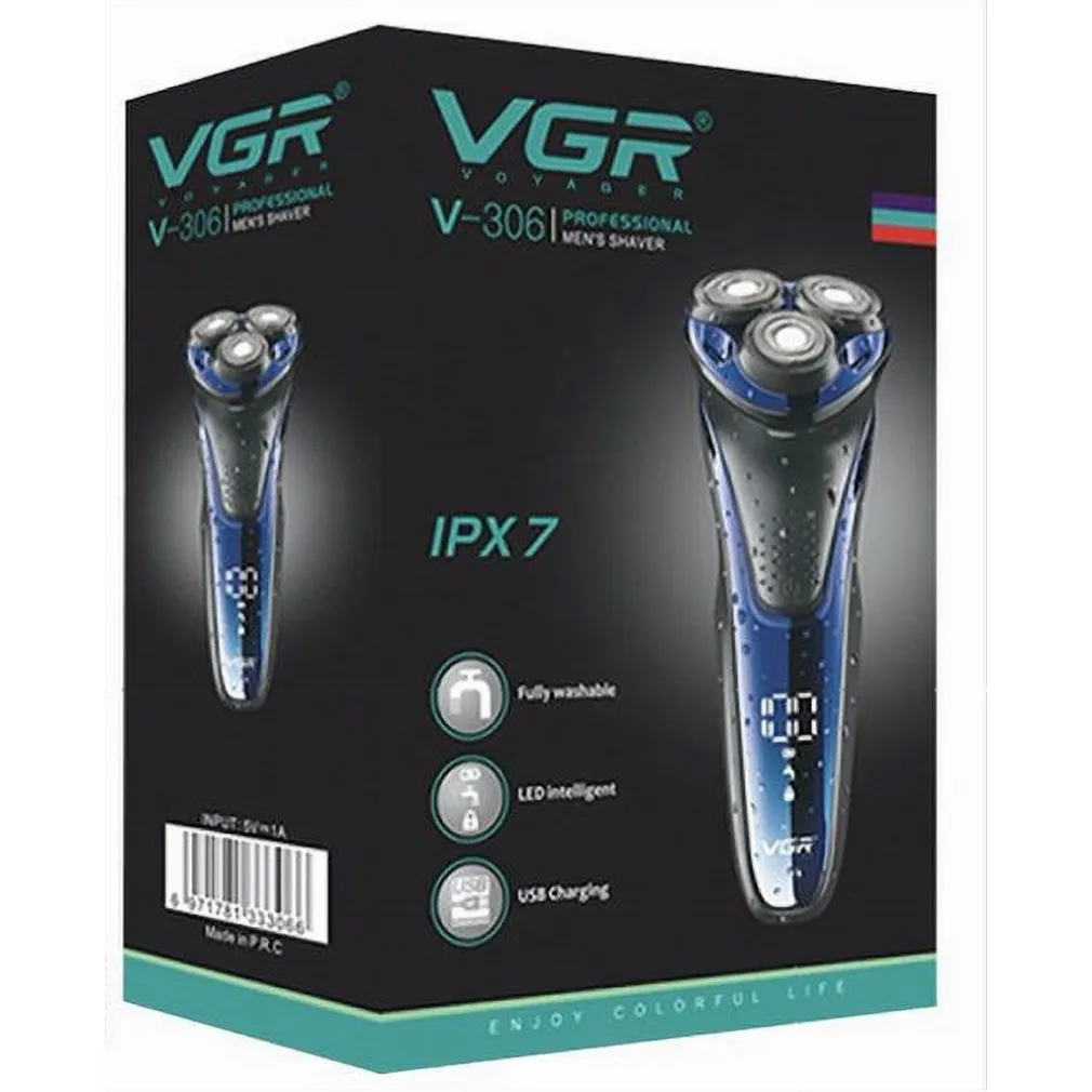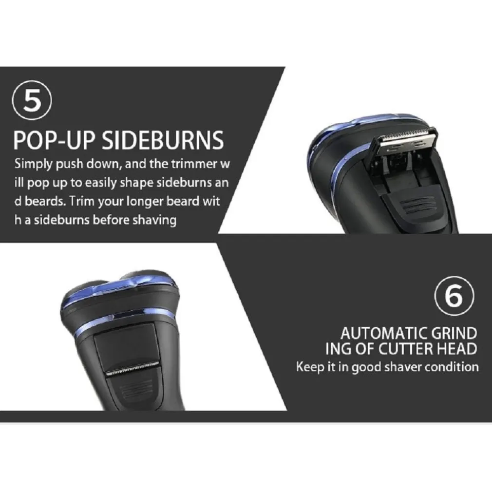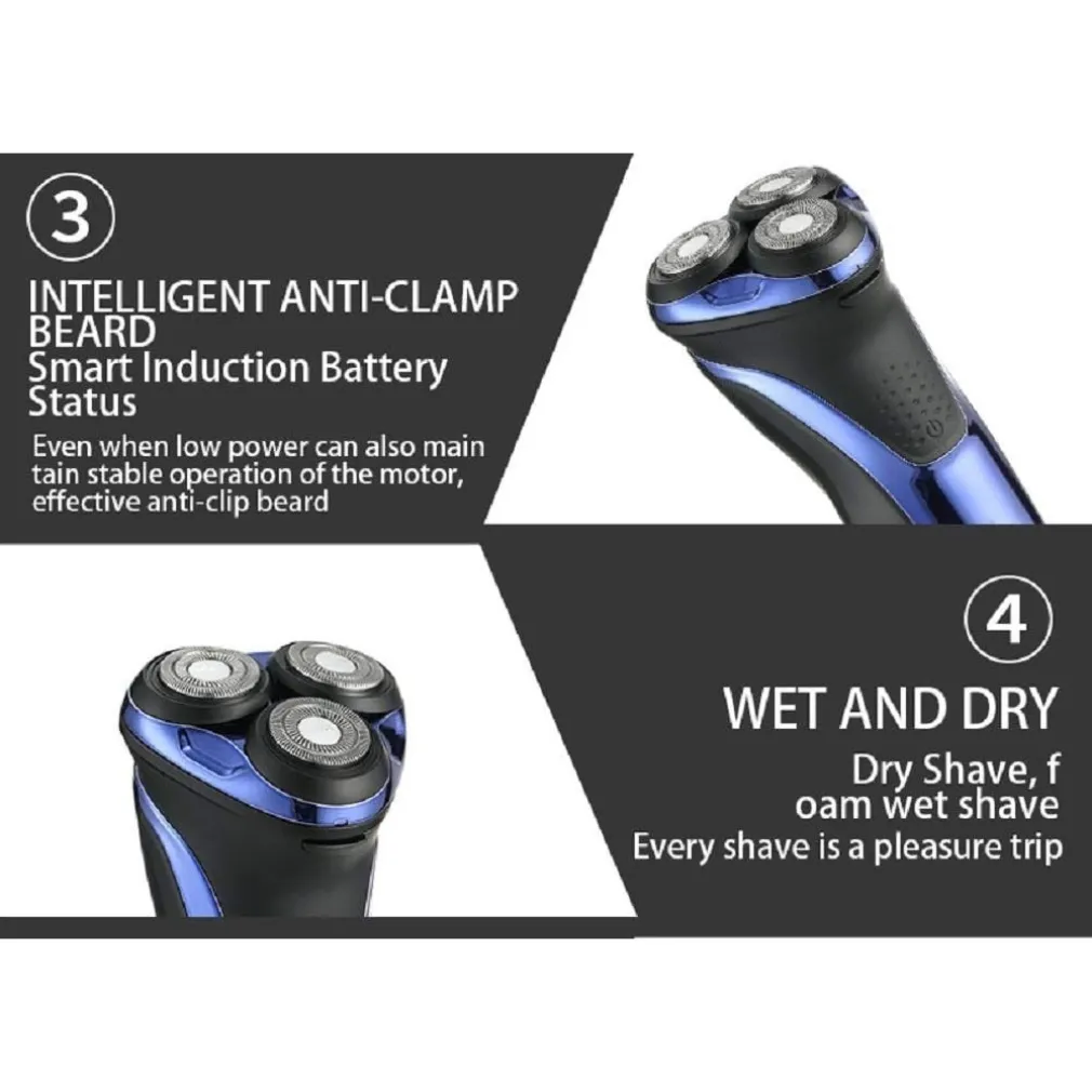 Rasoio Elettrico Uomo a 3 Teste USB Display LCD Batteria Ricaricabile IPX7 V-306