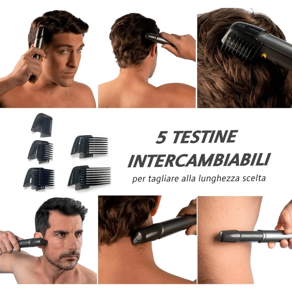- 5 testine intercambiabili: Perfette per ogni esigenza, dalla rasatura completa alla modellazione della barba e dei capelli.