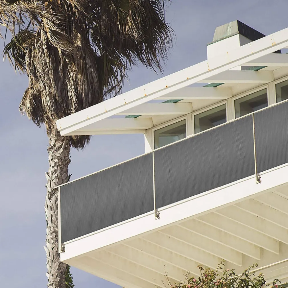 - I tappetini frangivista devono essere montati su una recinzione, ringhiera o su un’altra struttura di supporto stabile. Questo frangivista può sporgere fino a 10 cm in altezza. Se il tappetino è troppo lontano può essere danneggiato da vento o altri agenti atmosferici. Per il fissaggio dei tappetini sono necessari materiali di fissaggio o fascette. Non stringere le fascette stringicavo o il materiale di fissaggio in modo troppo stretto, in quanto ciò potrebbe danneggiare il tappetino per la privacy.