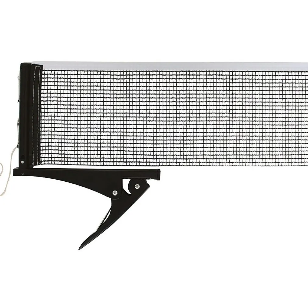 Rete da ping pong con pratico attacco a clip, per una rapida installazione senza il fastidioso bisogno d’avvitare. Molle strette e cuscinetti in gomma per una presa salda e antiscivolo. Robusta struttura in metallo con pali articolati per una dimensione di trasporto compatta. Rete in nylon durevole, resistente alla tensione e agli agenti atmosferici. Per tavoli fino a 3,5 cm di spessore. Tutto in una pratica borsa con cerniera e maniglia per il trasporto.