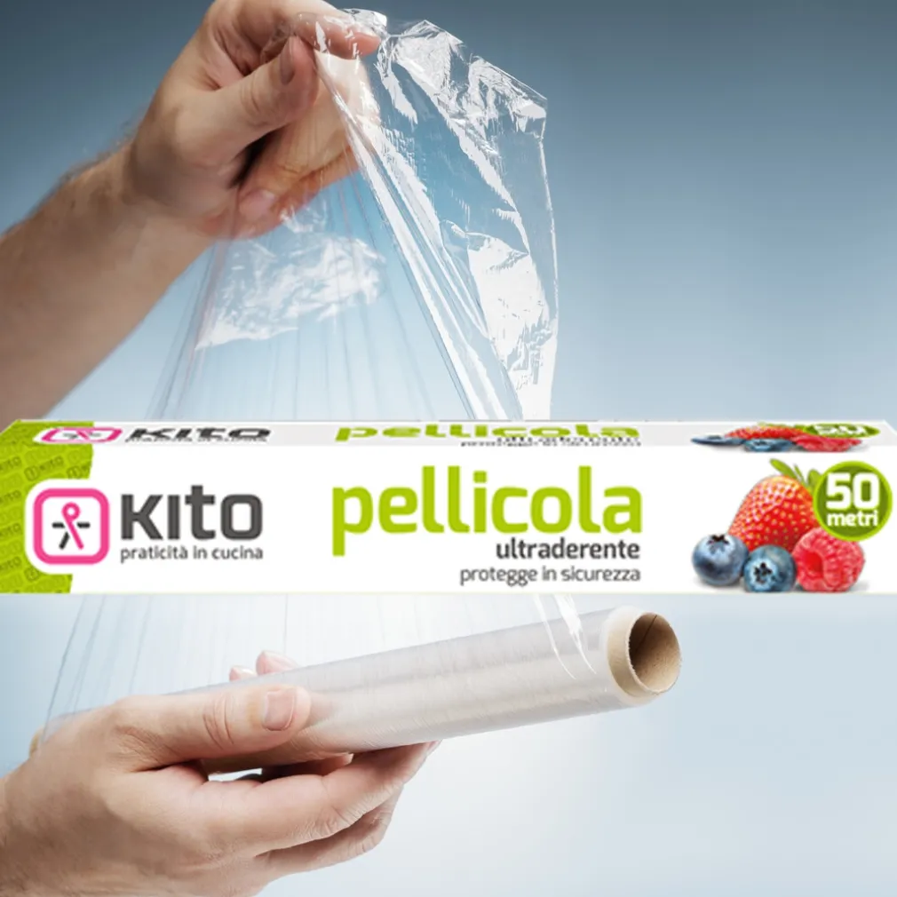 Per la sue caratteristiche di elasticità e di elevata aderenza, la pellicola trasparente kito funge da autosigillante perfetto, avvolgendo e conservando a lungo la freschezza dei tuoi alimenti, anche fuori dal frigorifero.