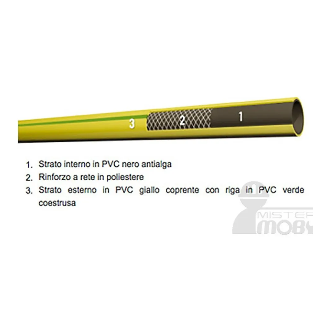 - Tre strati di PVC: La costruzione a tre strati garantisce una maggiore resistenza e durabilità, assicurando che il tubo sia in grado di sopportare le pressioni e le sollecitazioni tipiche dell’irrigazione e del giardinaggio.