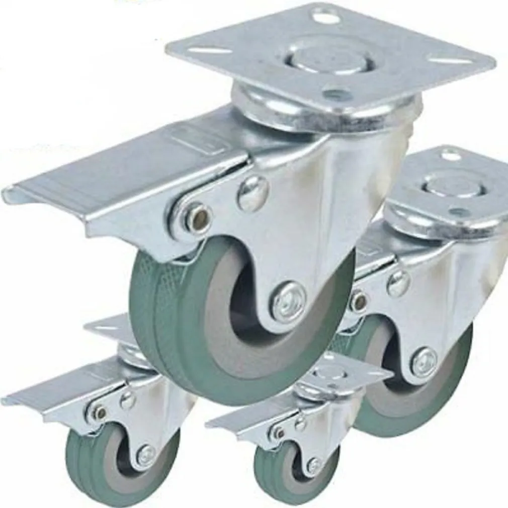 Ruota gommata con piastra girevole provvista di freno di varie misure per mobili, mobiletti, carrelli, accessori mobili e arredo casa, giardino e bricolage.