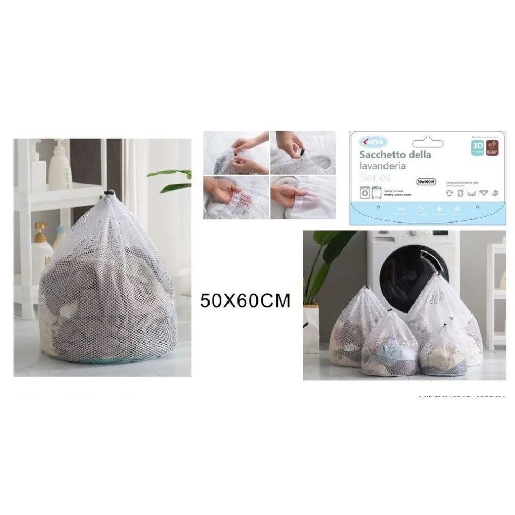 SACCHETTO LAVANDERIA BUCATO BORSA A RETE BIANCHERIA 50X60 CM CON COULISSE 58140