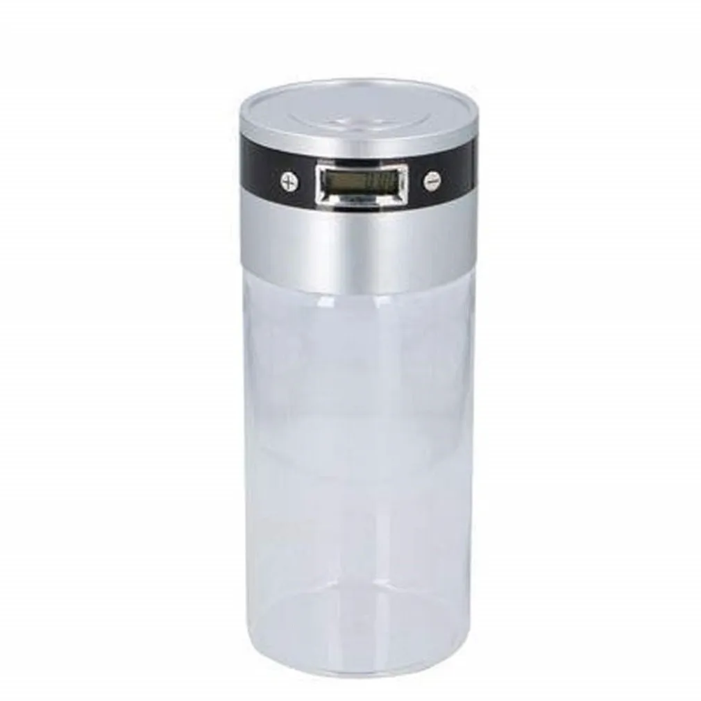 SALVADANAIO ELETTRONICO 33X14X14CM CONTATORE SOLDI EURO CON DISPLAY LCD DIGITALE CONTAMONETE BARATTOLO IN PLASTICA AUTOMATICO.