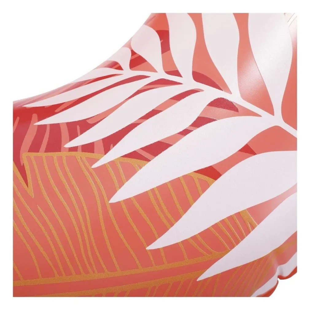 Concediti un momento di puro relax tropicale con il salvagente rosso corallo 91 cm: pratico, bello e pronto a seguirti ovunque tu voglia galleggiare con stile.