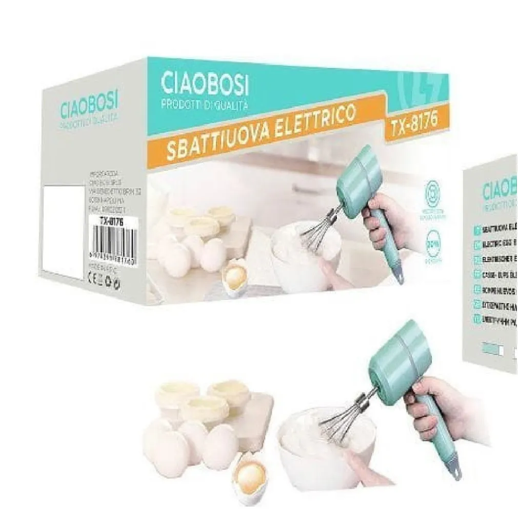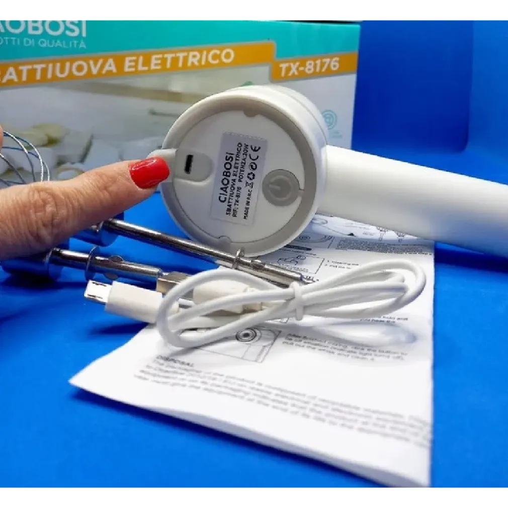 Frusta per panna e uova elettrica, moderna con cavo usb ricaricabile. Nuovo stile, funziona senza cavi, 3 velocità, super efficienza, colore bianco, due fruste diverse.