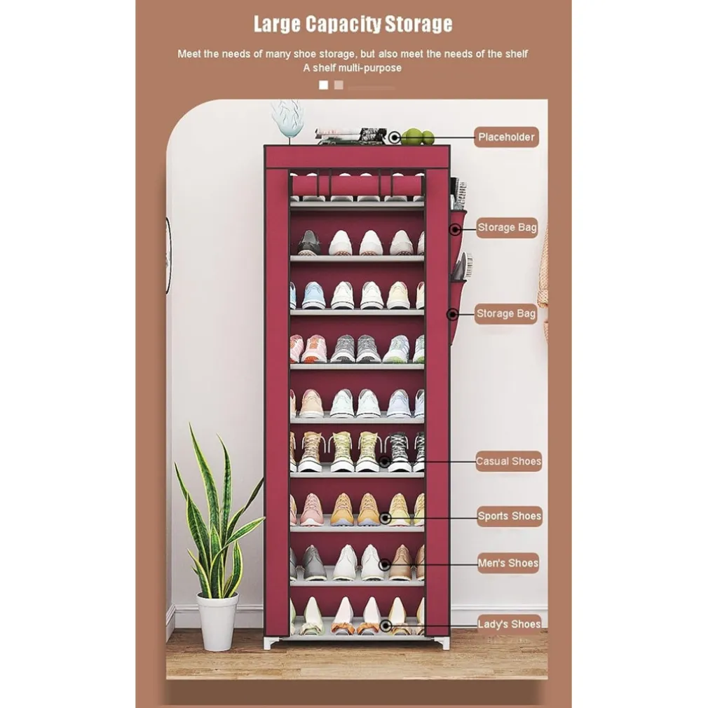 Sei alla ricerca di una soluzione pratica e di design per organizzare le tue scarpe? La scarpiera a 9 ripiani con copertura antipolvere è il prodotto che fa per te! Elegante, multifunzionale e salvaspazio, questa scarpiera è perfetta per mantenere il tuo corridoio, ingresso o camera in perfetto ordine, senza rinunciare allo stile.
