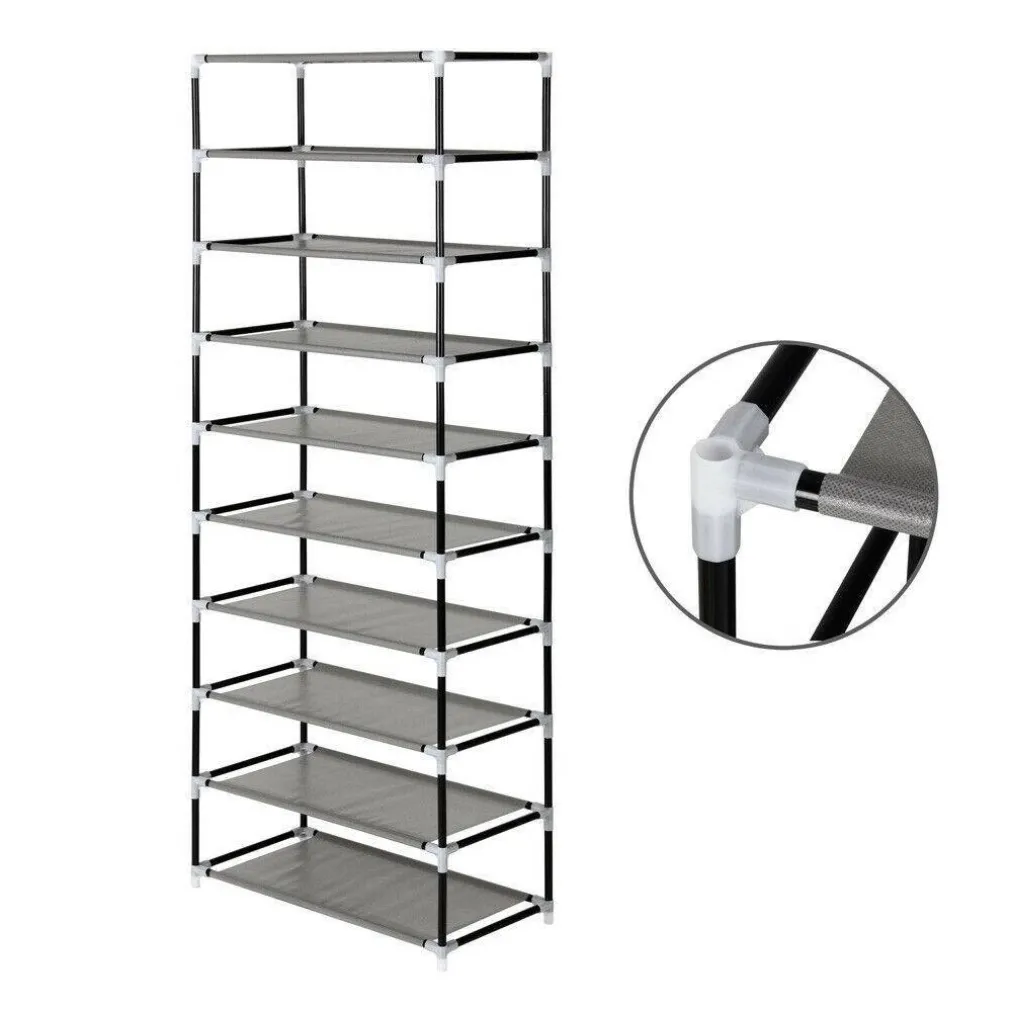 Scarpiera Salvaspazio 10 Ripiani 27 Paia Scaffale Acciaio e Tessuto TNT