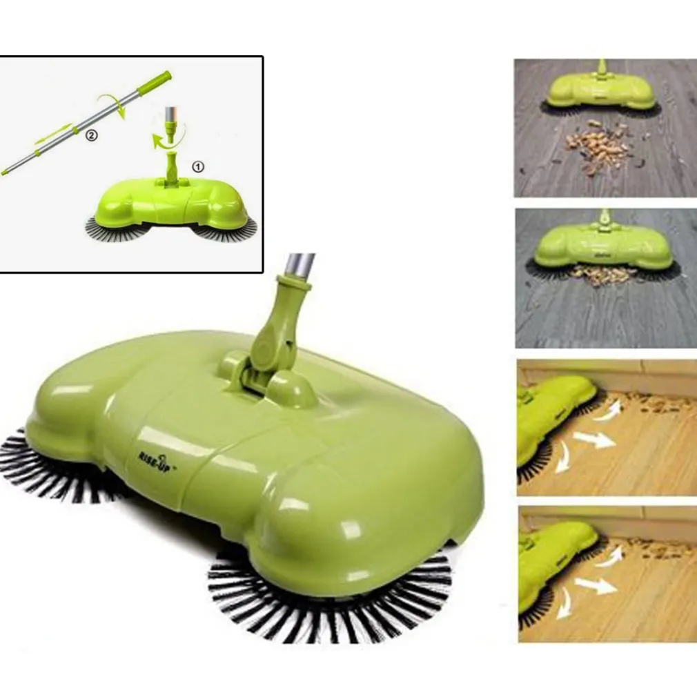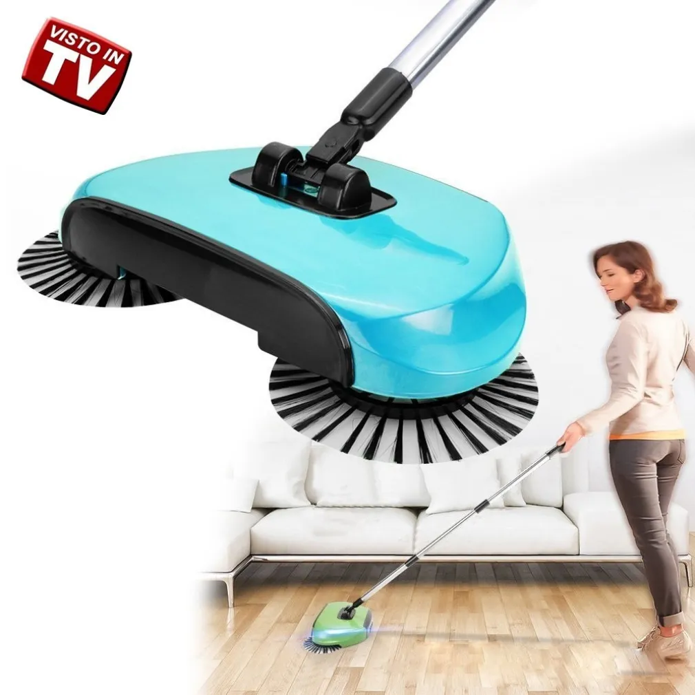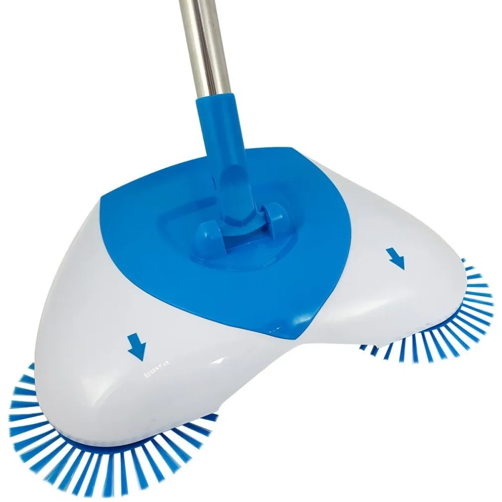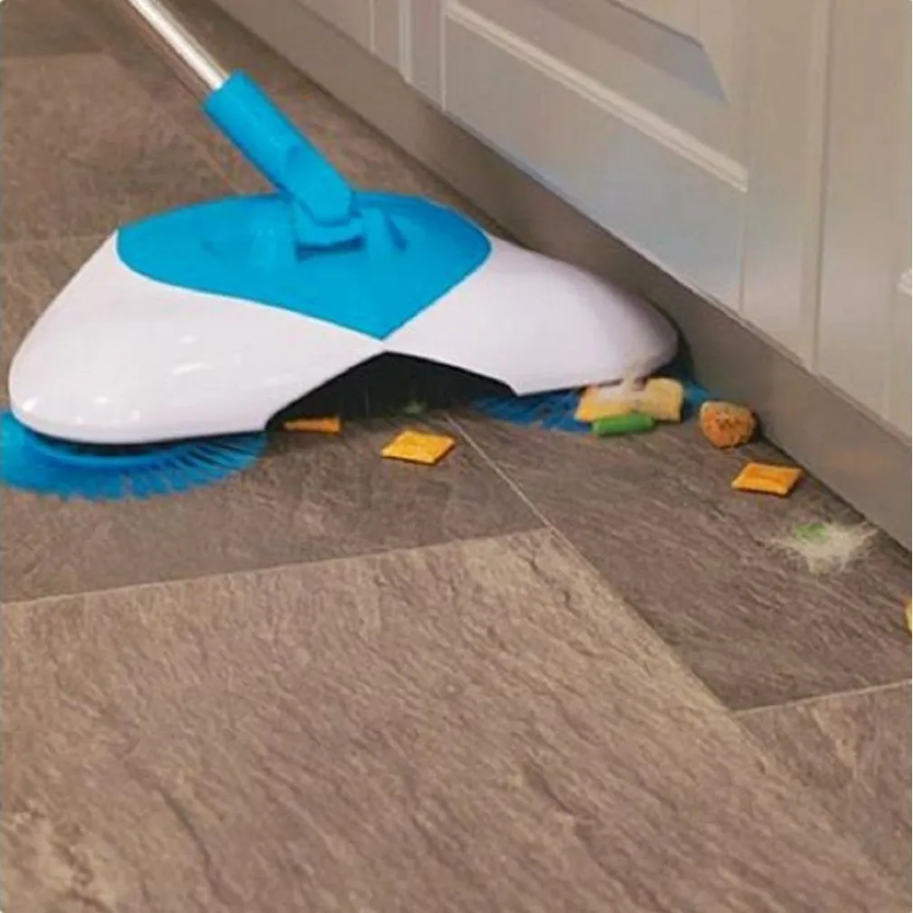 scopa rotante, non elettrica, ma funziona in modo efficace sul vostro pavimento o parquet. La pressione della mano sulla scopa accompagnata dalla spinta aziona i 3 rulli che catturano lo sporco e le briciole presenti sul vostro pavimento riportandole tutte al centro della scopa per poi essere definitivamente rimosse dal suo vano posteriore.