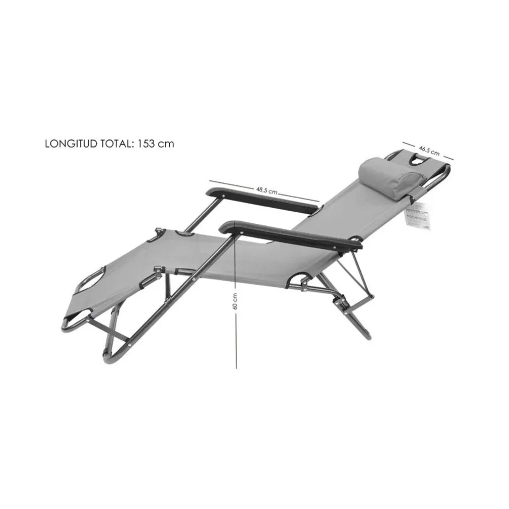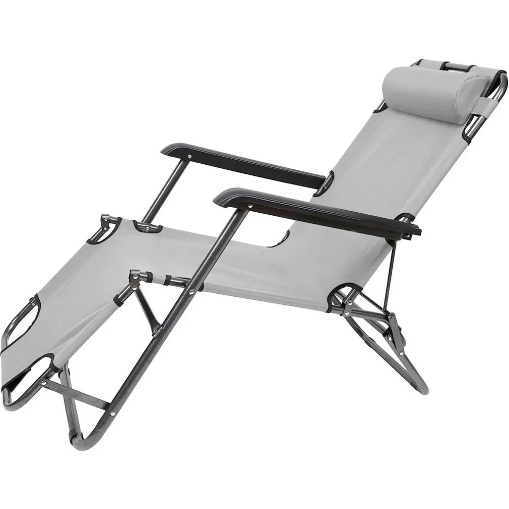 SEDIA A SDRAIO LETTINO PIEGHEVOLE RECLINABILE IN METALLO CON POGGIATESTA GRIGIO 017055