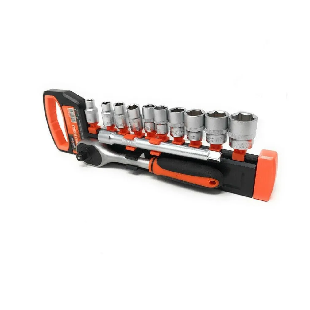 Pratico e comodo kit completo di bussole e chiave a cricchetto reversibile da 1/2″, raccolto in un pratico porta bussole dove poterle risistemare una volta utilizzate, dotato di manico per un facile trasporto.