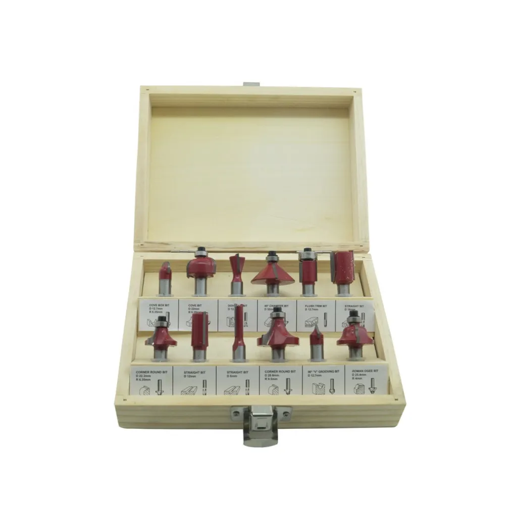 12 frese con diverso diametro e per fresature diverse, come rifilare o scanalere il legno. Oggetto utiule per fresatrici. Conservate in una comoda scatola di legno. All’interno chiavino per le 12 frese. Ideali per falegnami e professionisti ma anche per amanti del fai da te. Prodotto in valigetta in legno per essere trasportato comodamente e per evitare di smarrire le frese.Realizzate in acciaio e tungsteno e con gambo di 6mm. Kit composto da 12 punte frese coniche allargafori per lavorazioni del legno, per gli amanti del fai da te o per lavori professionali. Potrete eseguire facilmente scanalature, decorazioni e lavori nel legno. Composte interamente da lega metallica. Le punte sono di differenti misure, ed il tutto contenuto in una comodissima valigetta in legno da portare sempre con se o per riporre in ordine le frese dopo averle utilizzate.