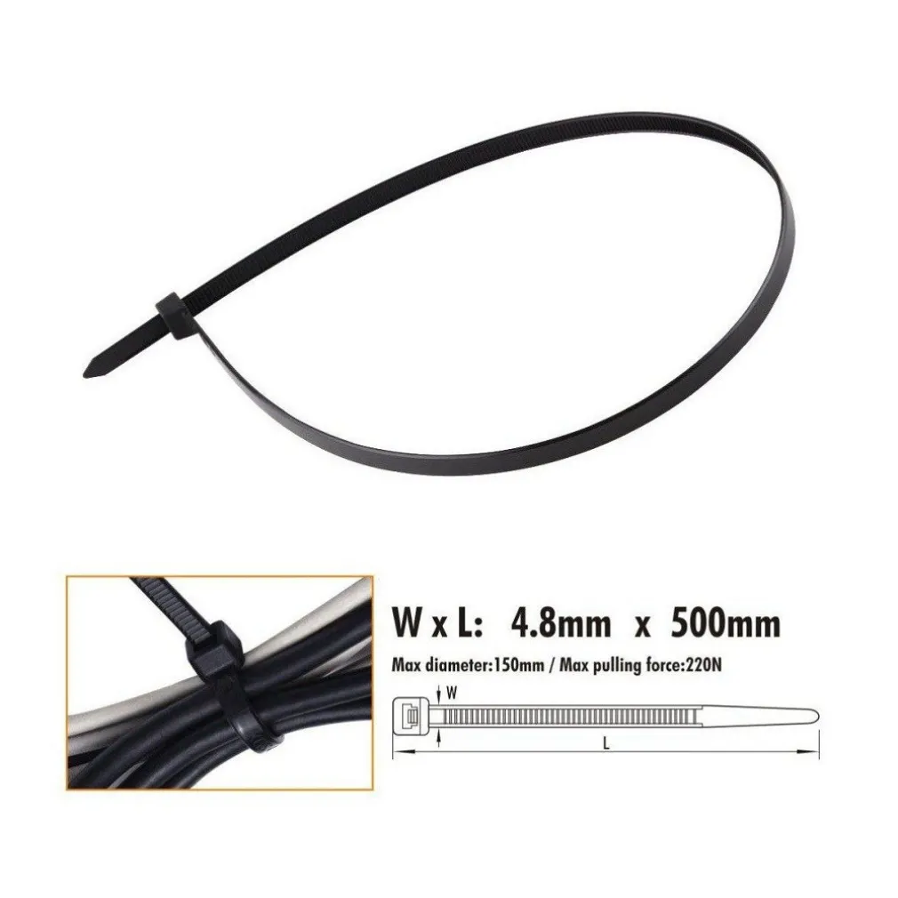 SET 20PZ FASCETTE CAVI CAVO NERO STRINGENTI IN PLASTICA NYLON 4.8 X 500 MM 92387 – Trade Shop Italia