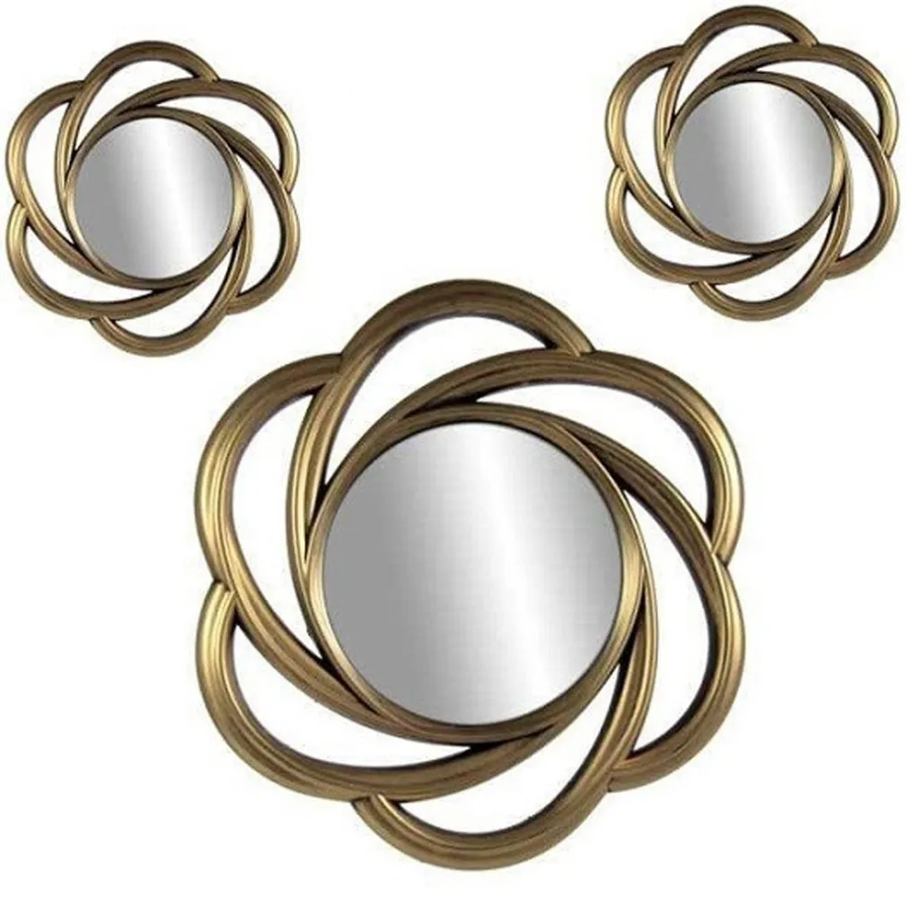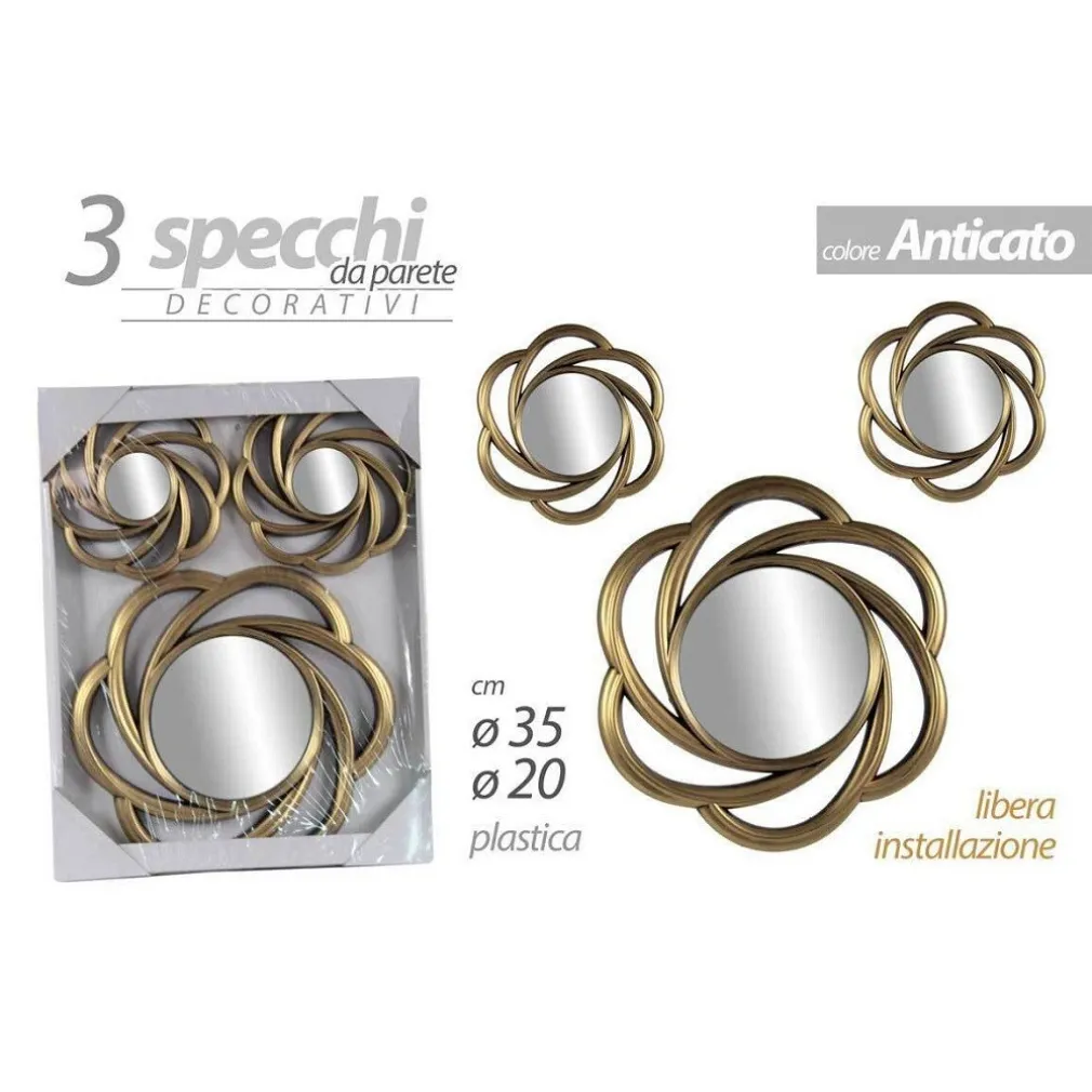 SET 3 SPECCHI PARETE DECORATIVI ORO ANTICATO LIBERA INSTALLAZIONE 20-35CM 836855
