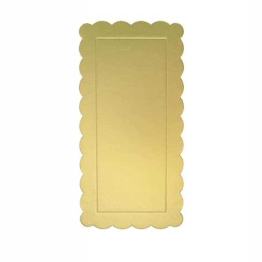 Il set presenta dimensioni di 15×30 cm, un elegante colore oro, un bordino laterale ondulato per una presentazione più raffinata, e una grande resistenza che lo rende perfetto per dolci anche con parti liquide.