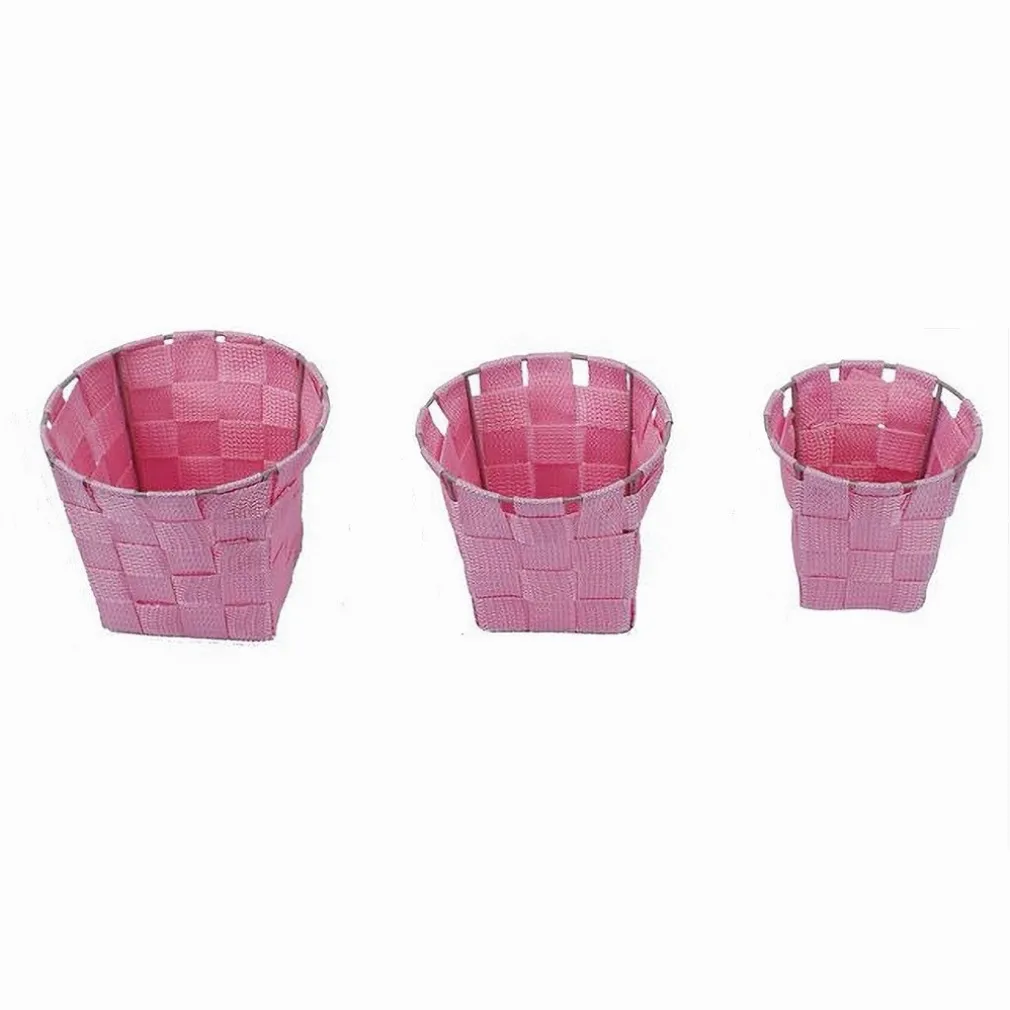 SET 3PZ CESTINI ROTONDI PORTAOGGETTI IN TESSUTO ROSA PER BAGNO CASA CUCINA 79047