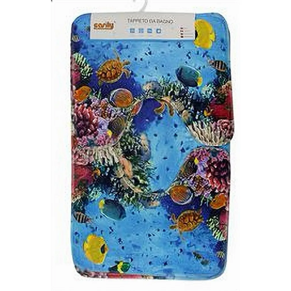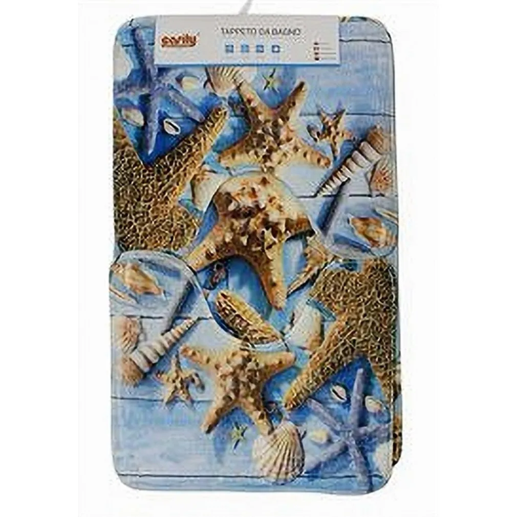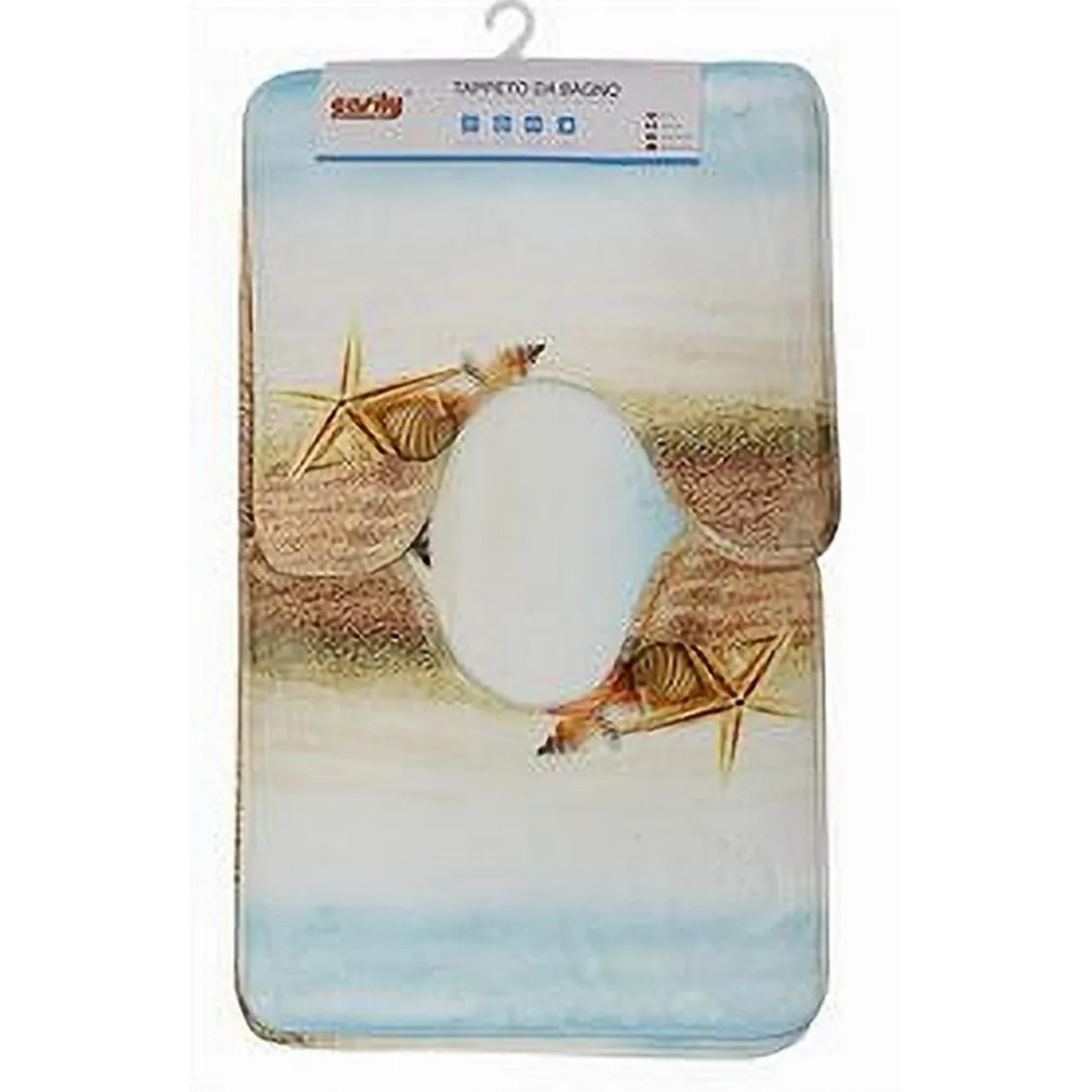 SET 3PZ TAPPETO TAPPETINI TESSUTO ARREDO BAGNO ANTISCIVOLO FANTASIA MARINA 79444